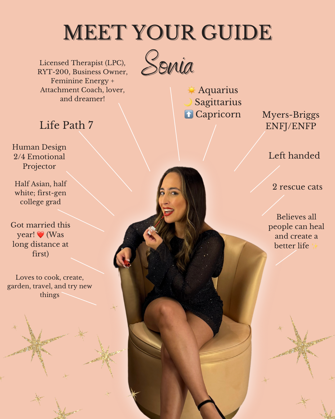 The foundational course in Sonia's Lucky Lady Coaching movement, this is where attachment and nervous system science meets feminine energetics - so you can stop chasing love and start receiving it (from yourself and others).